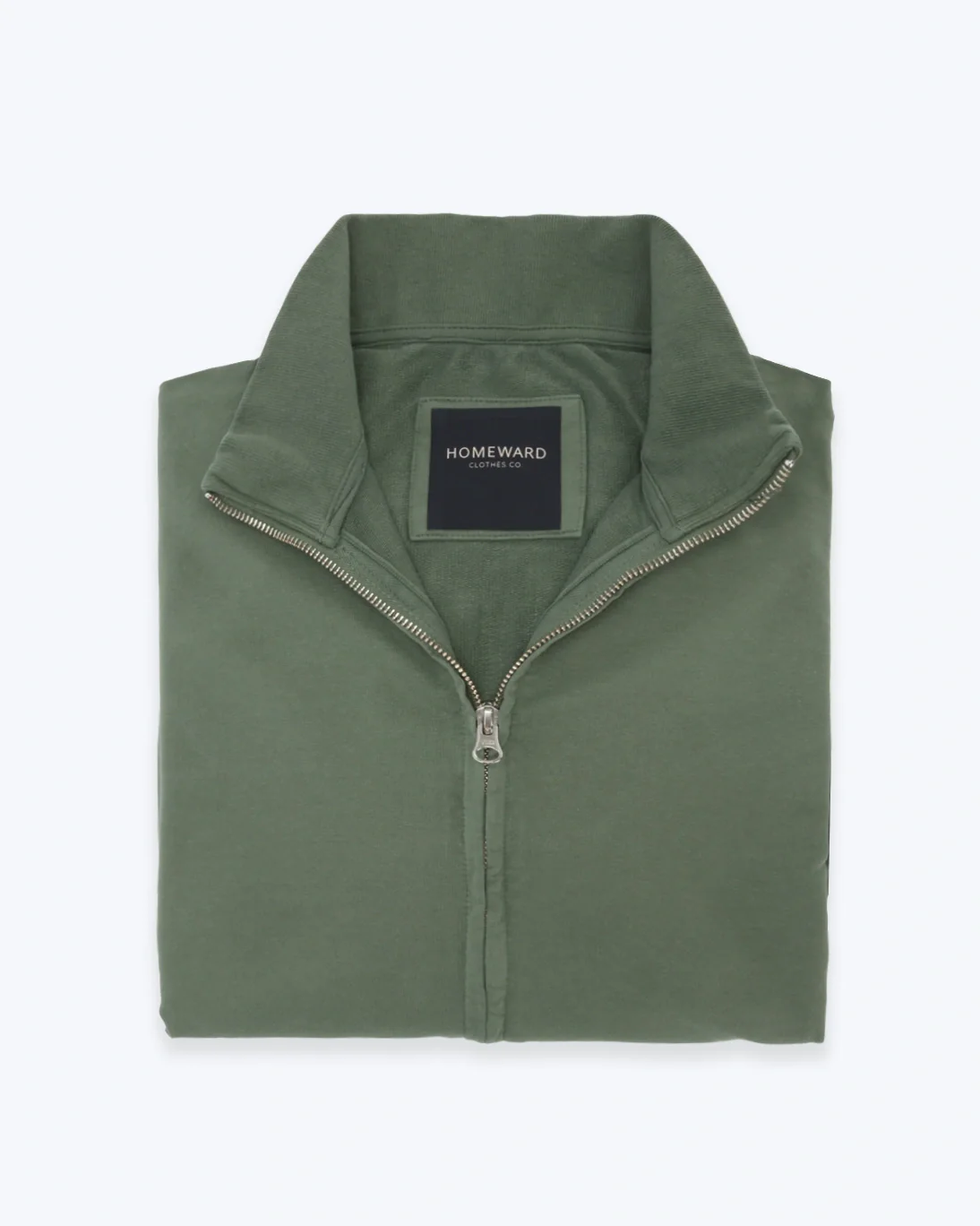 Sudadera de la marca Homeward en color verde. Se cierra con cremallera y tiene bolsillos laterales. Además, los puños y la parte de abajo son elásticos.