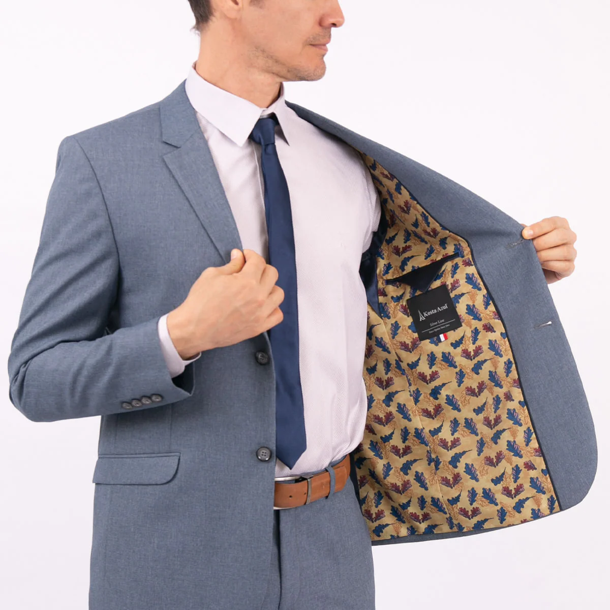 Traje 2 botones sin prenses diseño microdiseño, silueta slim, composicion 65% poliéster – 35% viscosa, con contrastes internos y diseño vanguardista que te daran un toque de elegancia y estilo.