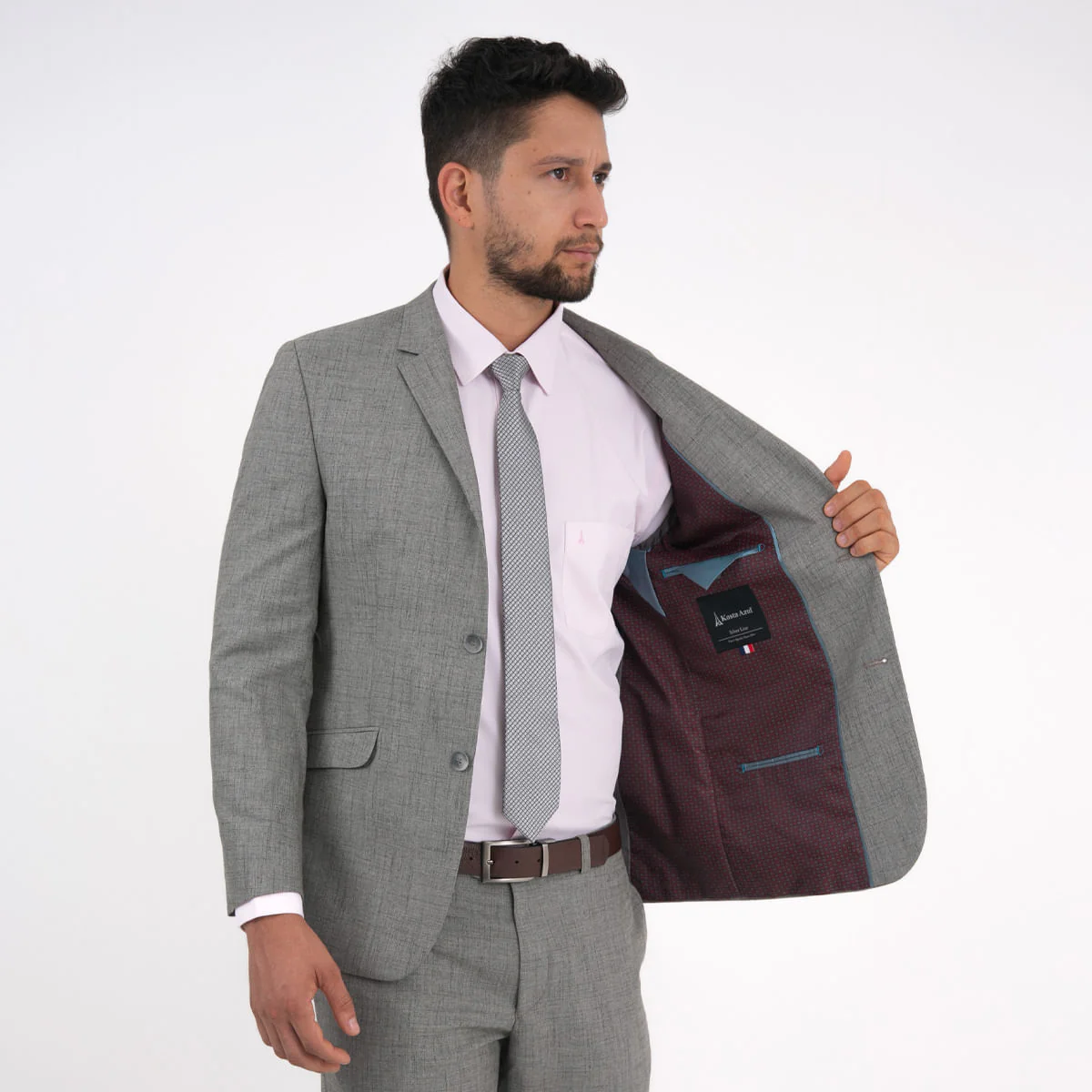 Traje 2 botones sin prenses diseño fondo entero, silueta slim, composicion 80% poliéster – 20% viscosa, con contrastes internos y diseño vanguardista que te daran un toque de elegancia y estilo.