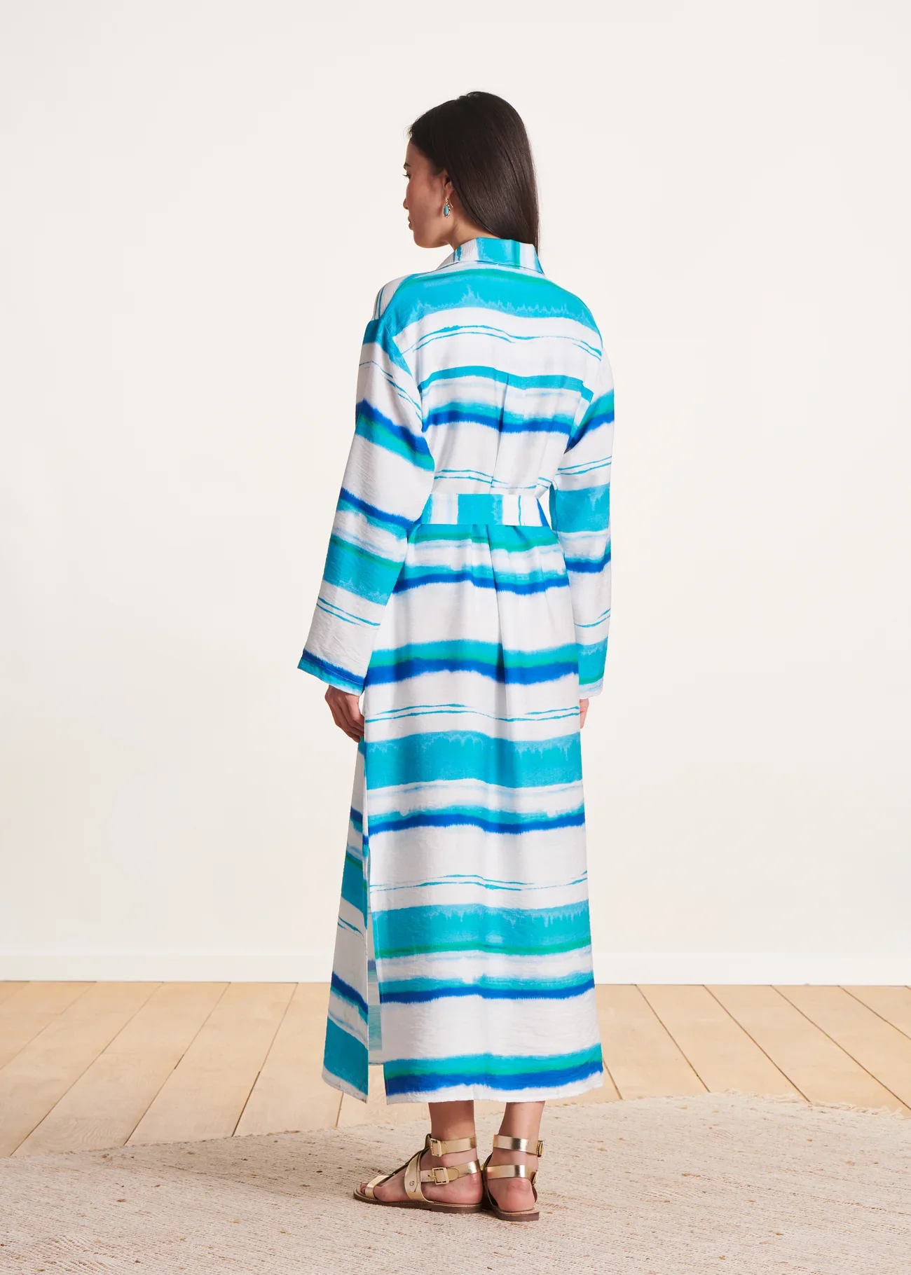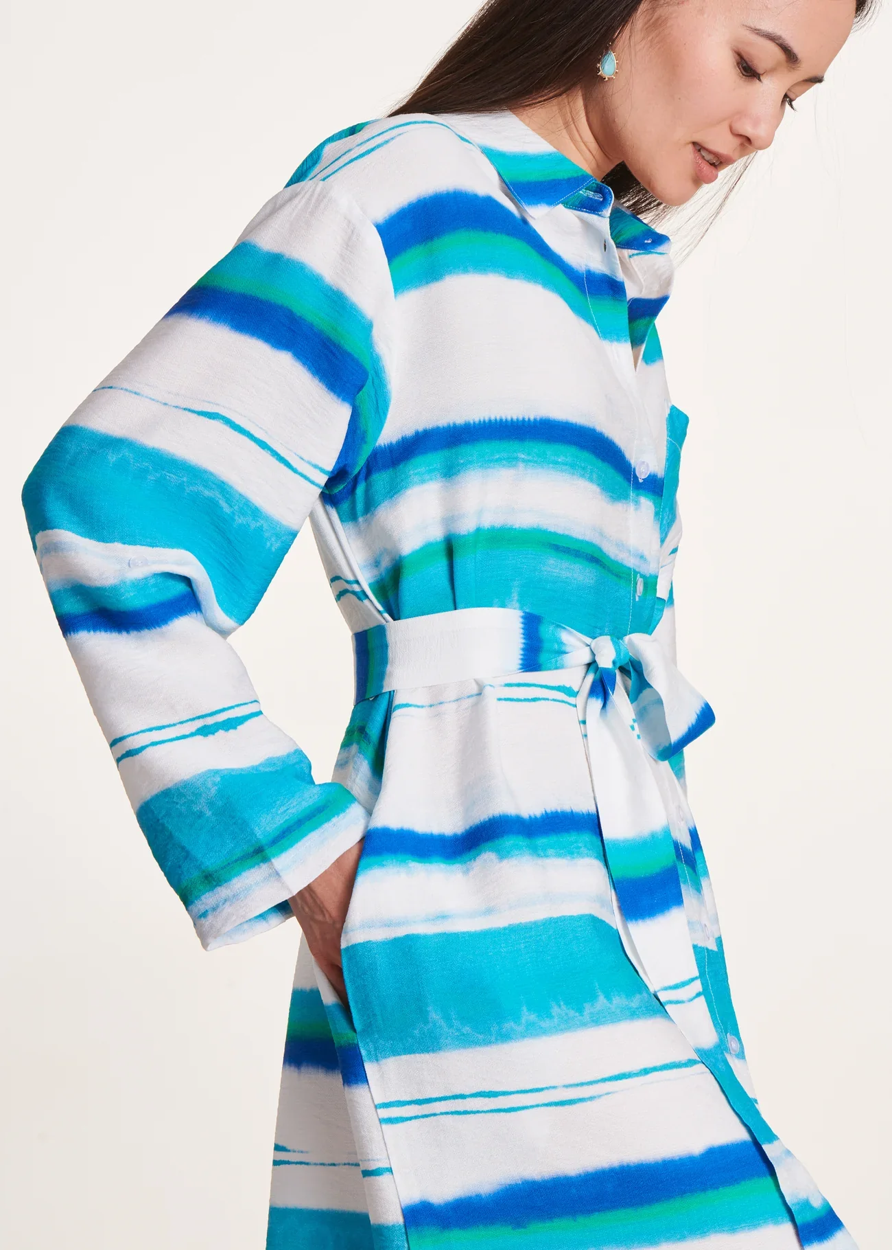 - Vestido camisero de largo medio en viscosa/lino con estampado tie & dye