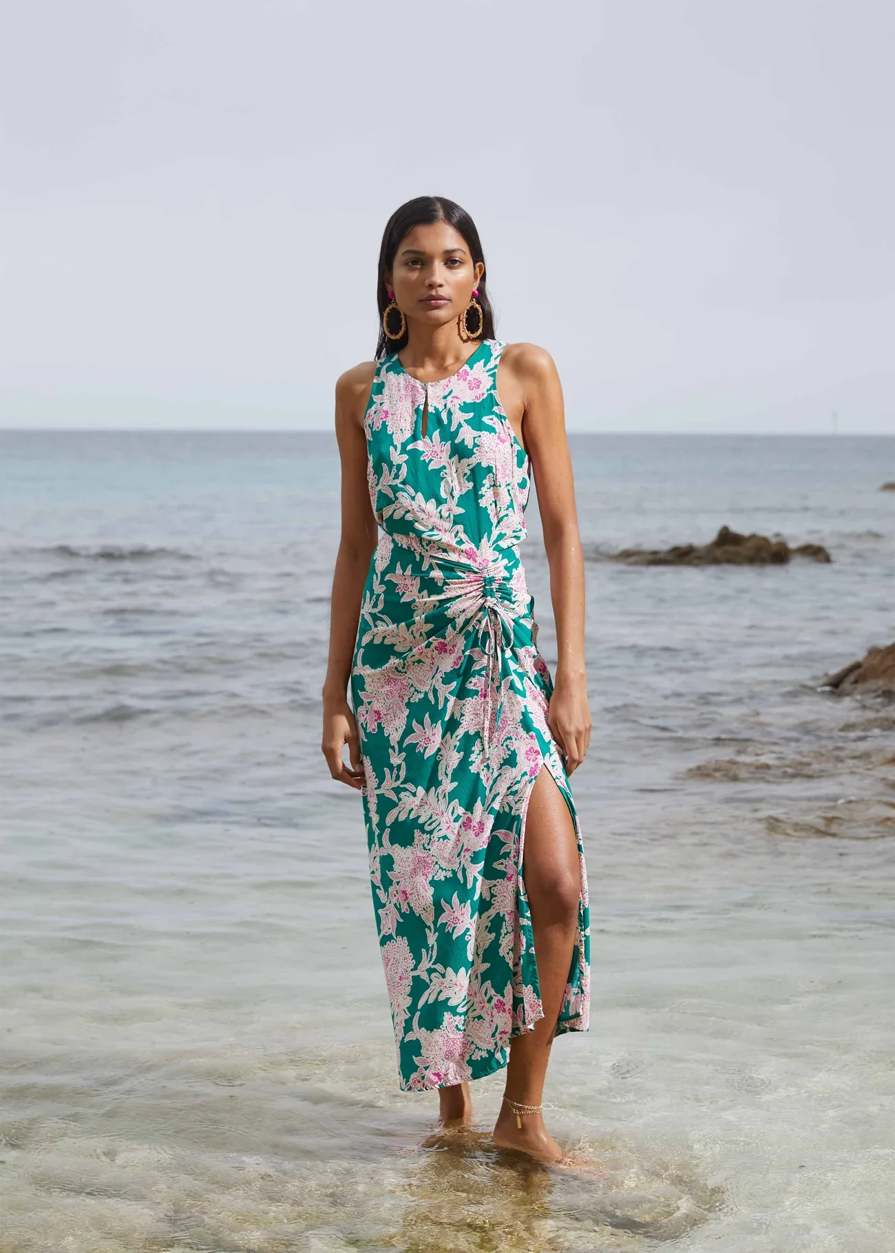 Vestido formal de largo midi con estampado floral de viscosa Ecovero