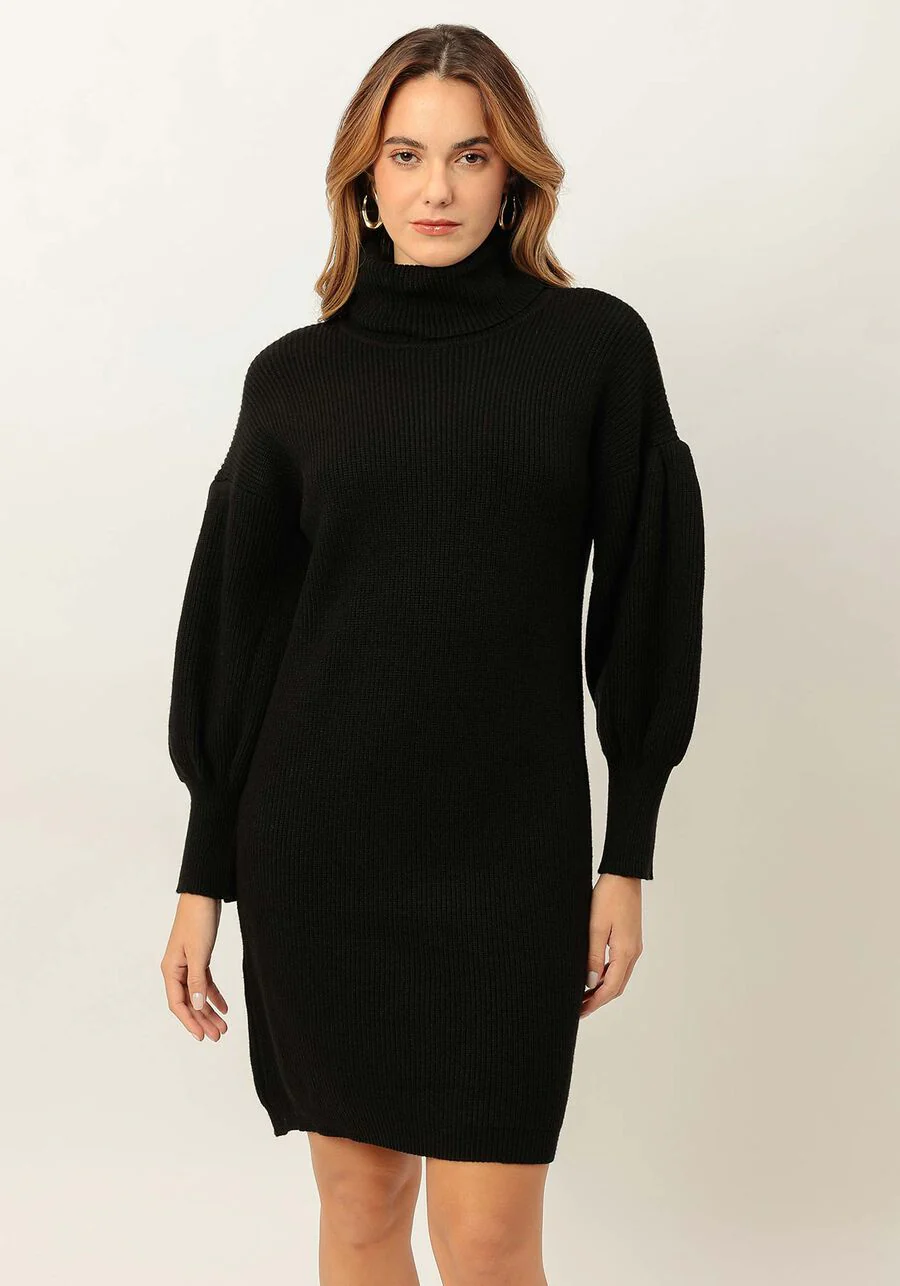 Una invitación a la elegancia y el estilo: este vestido corto de punto, con mangas abullonadas y cuello alto, es pura singularidad. Sofisticación en cada detalle, ya sea utilizando una forma recta o experimentando con un toque atrevido con la combinación de dos cinturones que ciñen la cintura.
