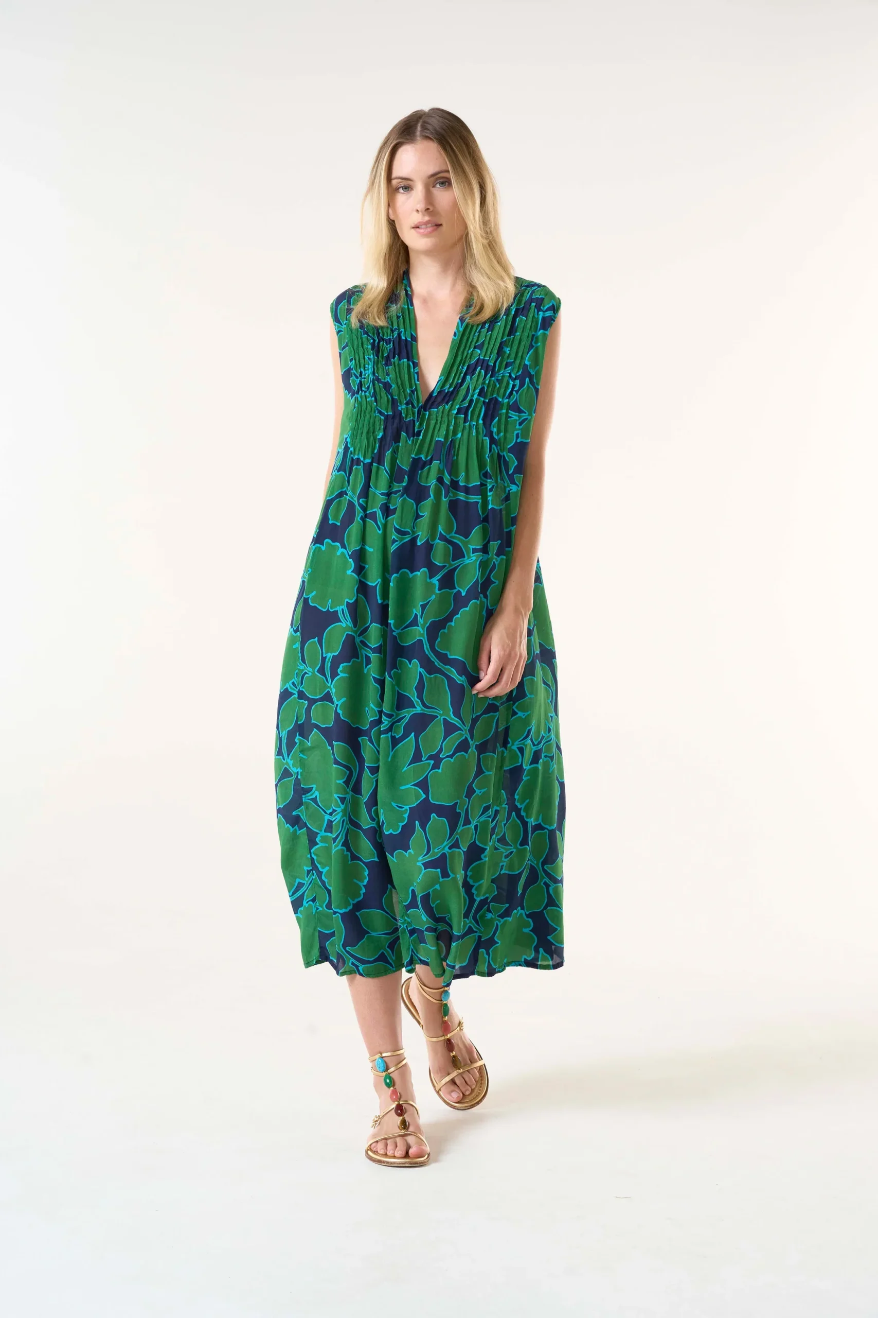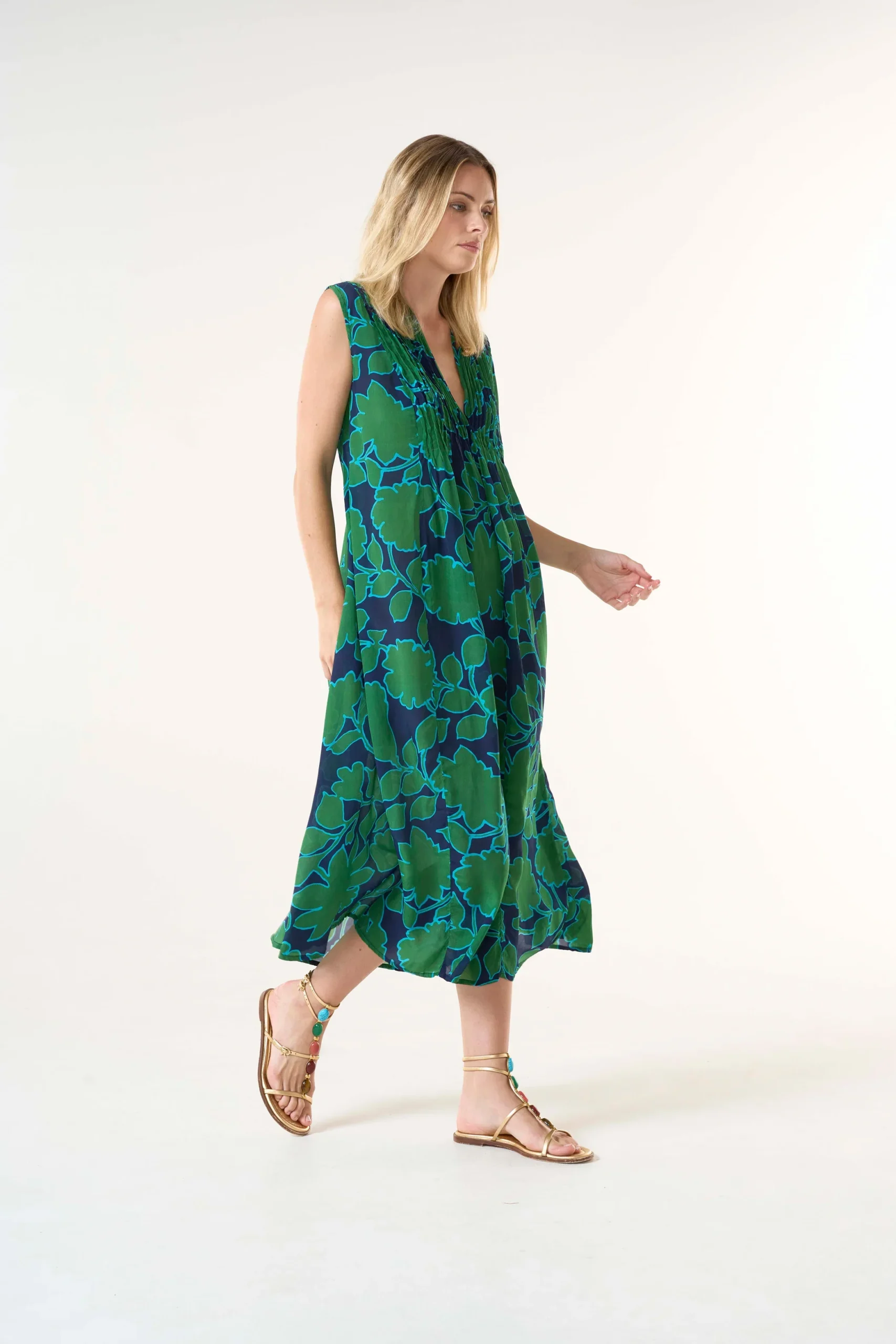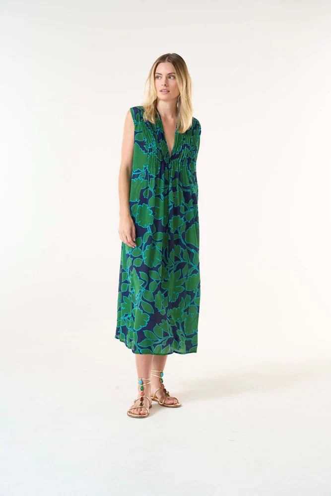 El Tommy encarna la elegancia equilibrada. Su diseño fluido y sin mangas presenta un favorecedor corpiño con pinzas y un pronunciado escote en V.