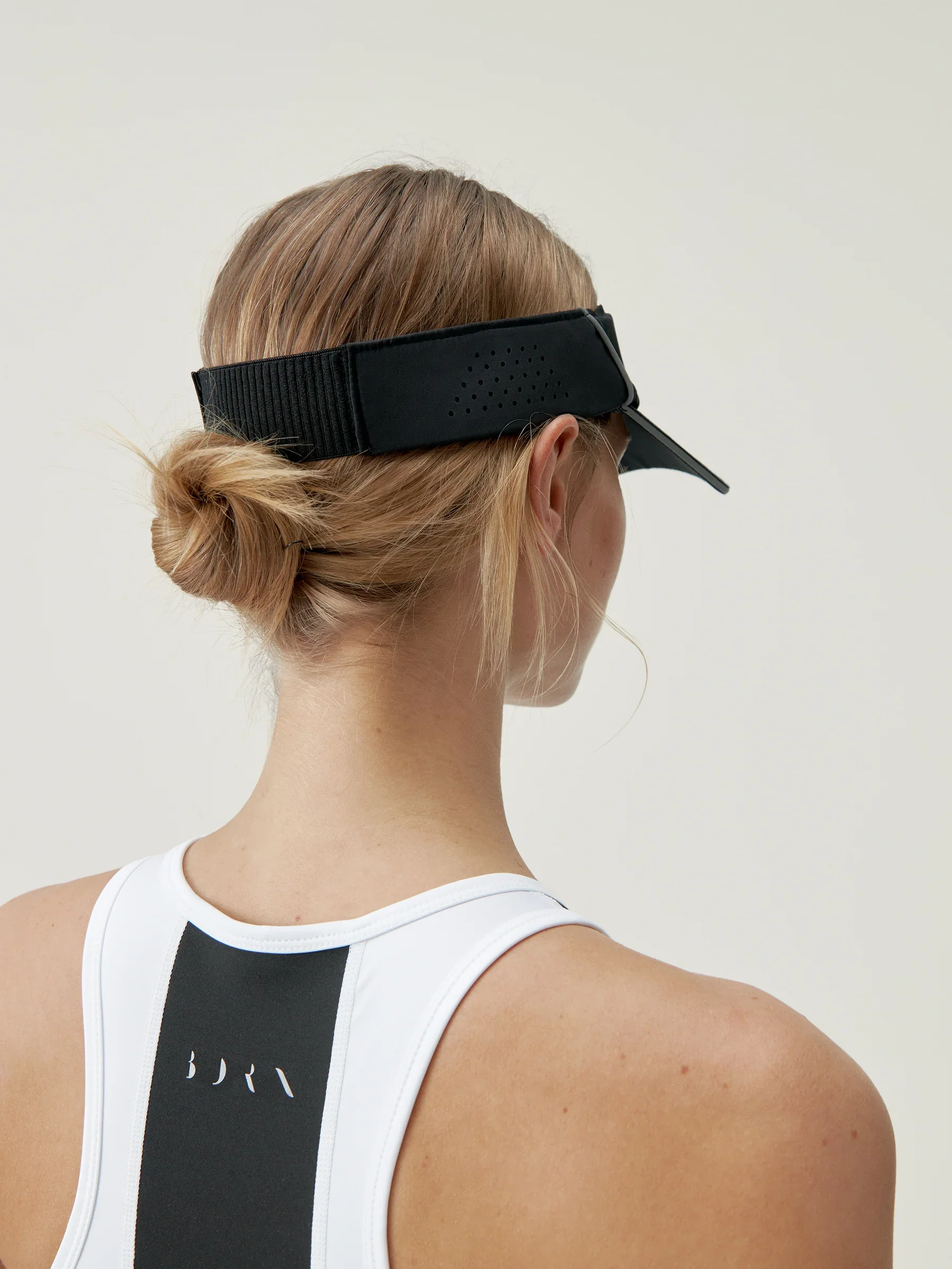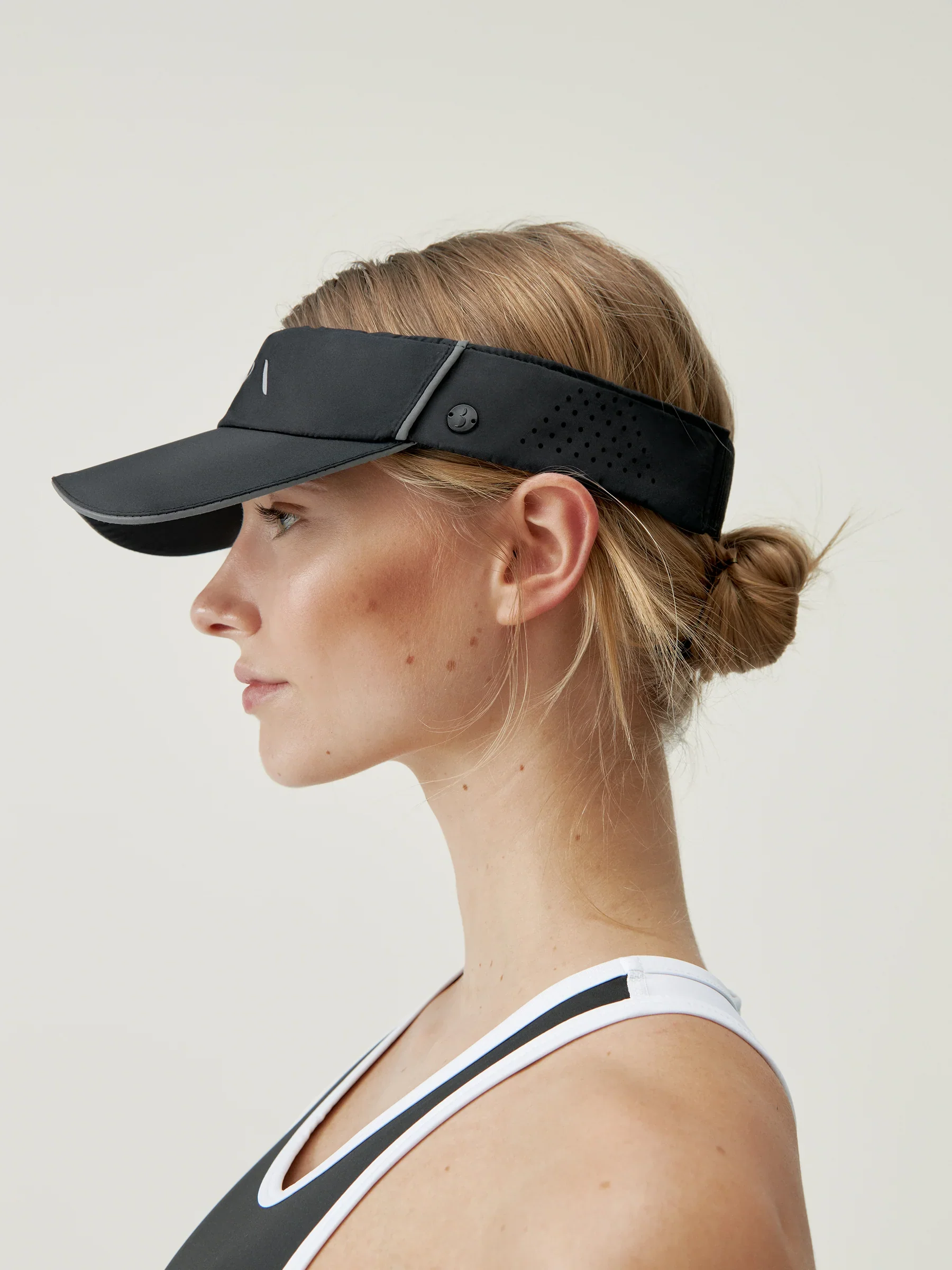 Visera deportiva realizada en tejido técnico, con microperforado. Corte láser para una mayor transpiración. Banda elástica trasera para mayor adaptabilidad.