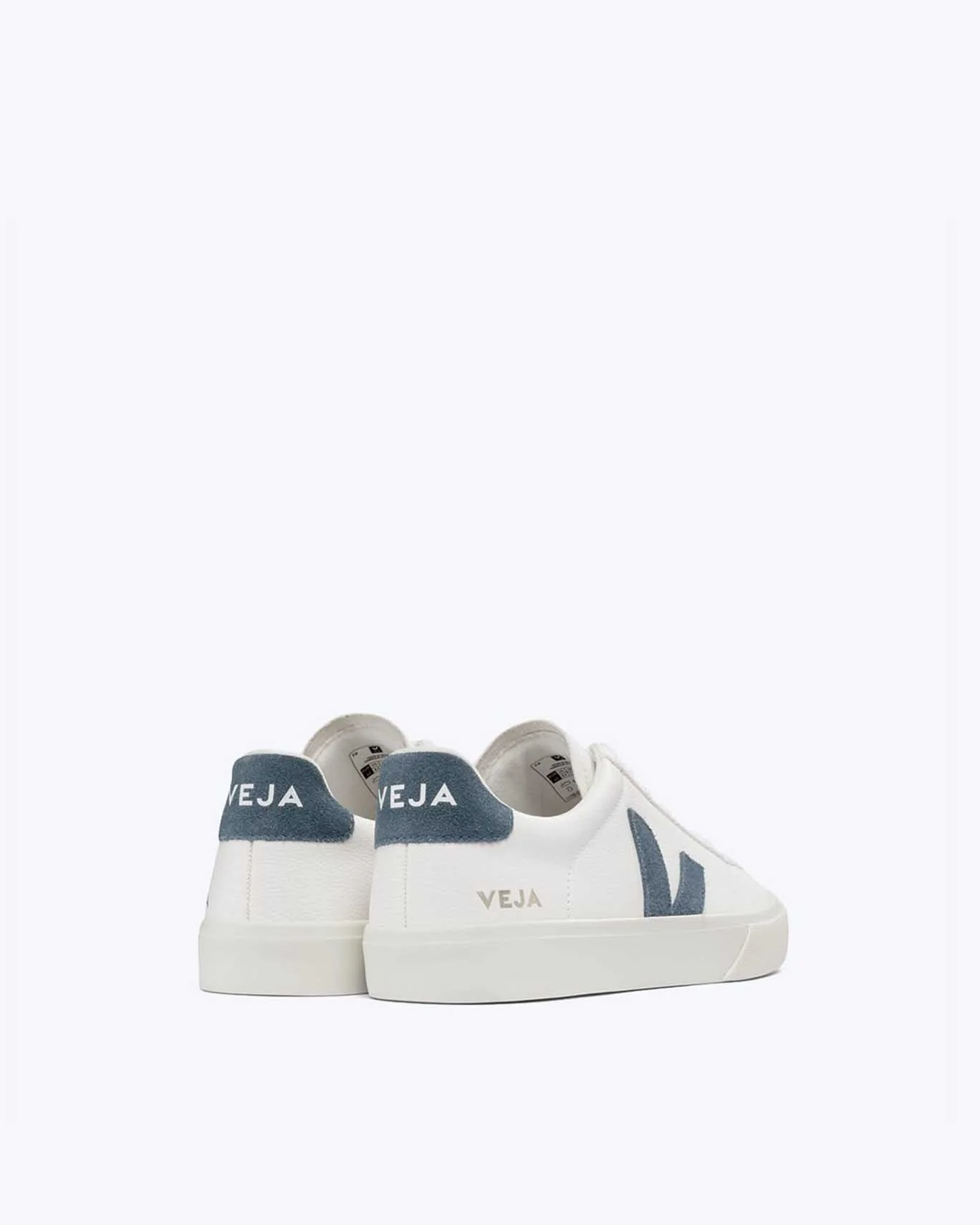Zapatillas de la marca Veja modelo campo, de piel bovina ChromeFree suave y ligera, En color blanco, con la suela de caucho. El logotipo y la V son de ante.