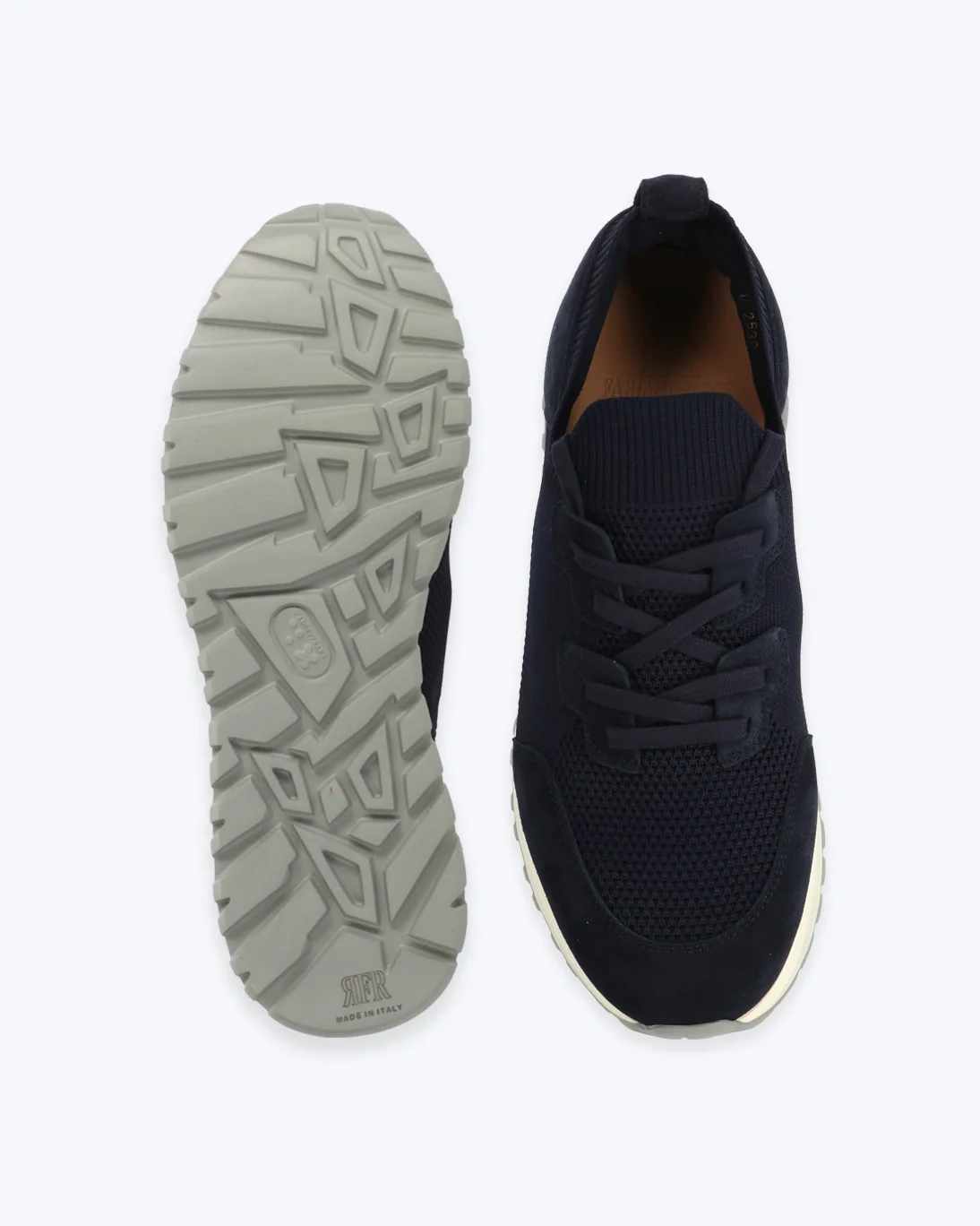 Zapatillas de la marca Fabiano Ricci, de color azul oscuro con la suela blanca.