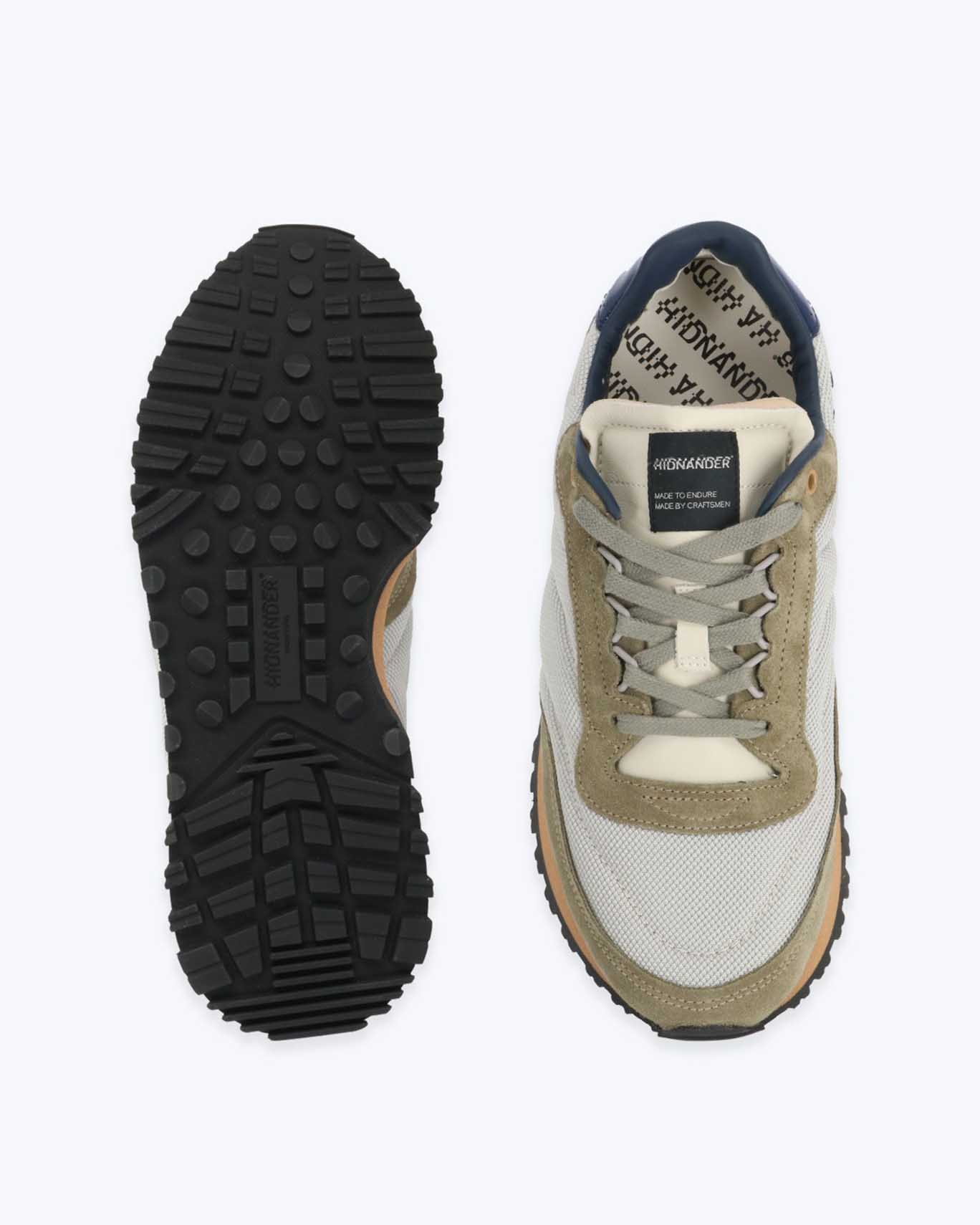 La parte superior está elaborada con una combinación de nailon, malla y ante. Boomerang de cuero y suela de EVA moldeada a mano en material superligero.