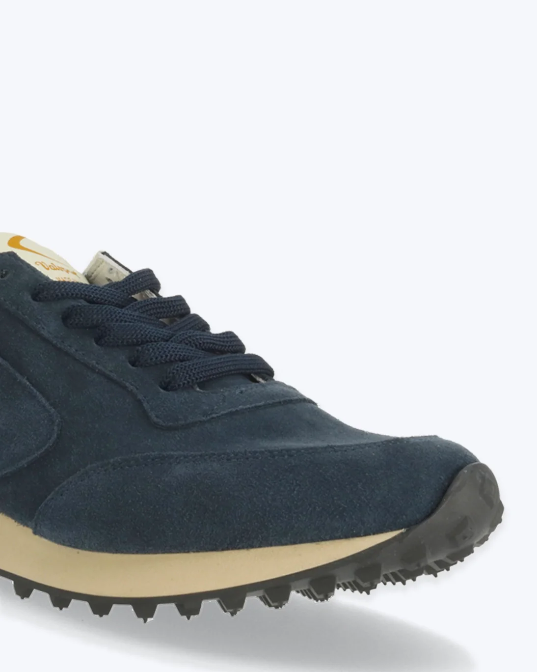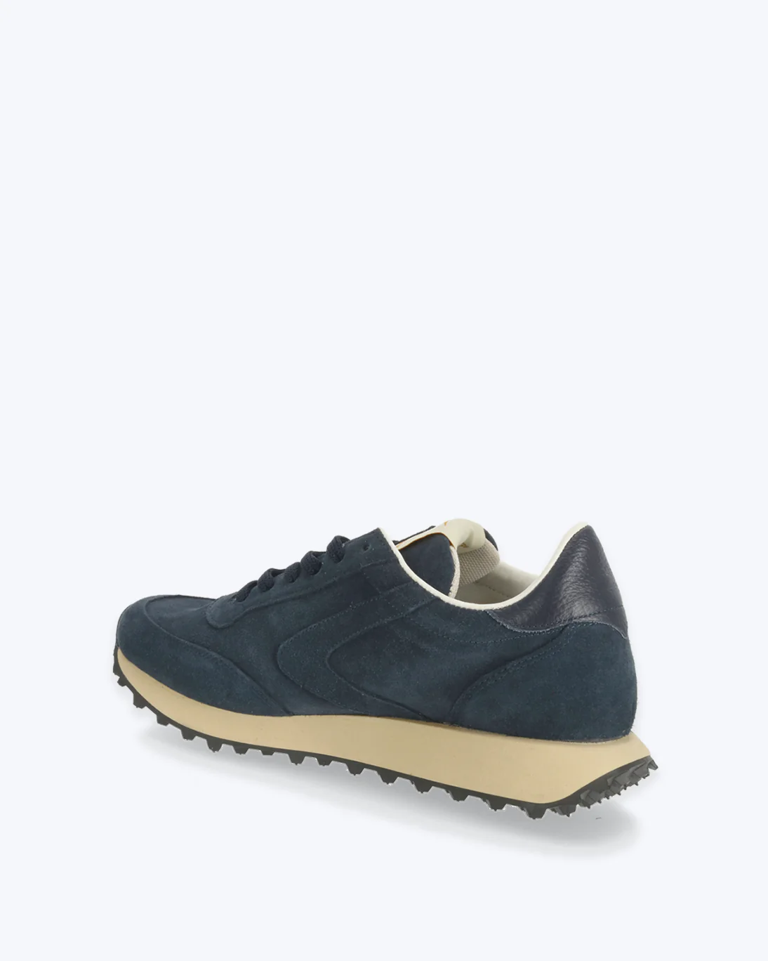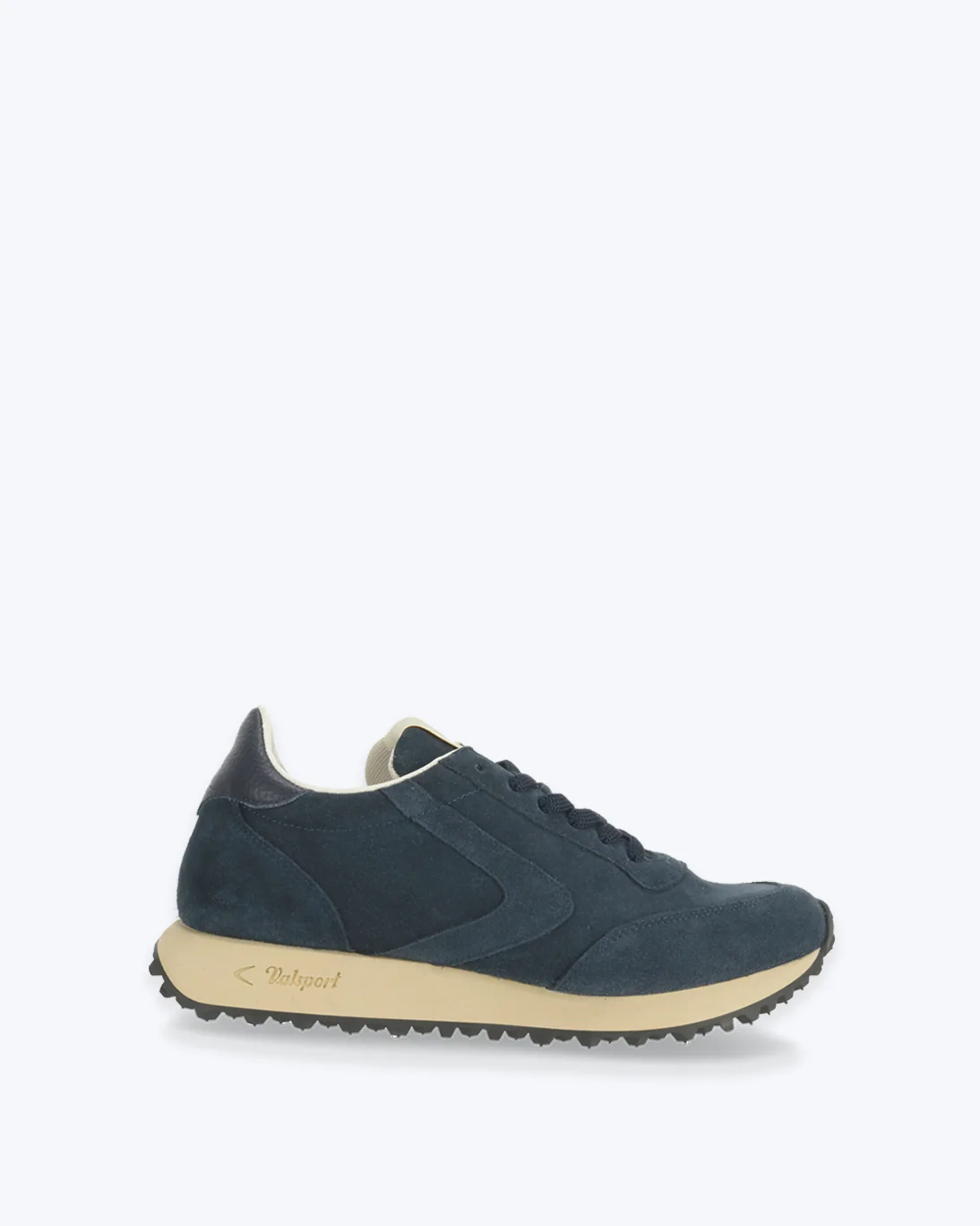 Parte superior en ante y parte trasera en cuero napa. Suela de goma diseñada por Valsport con inspiración heritage running. Detalles en negro, forro de cuero y cordones de algodón.