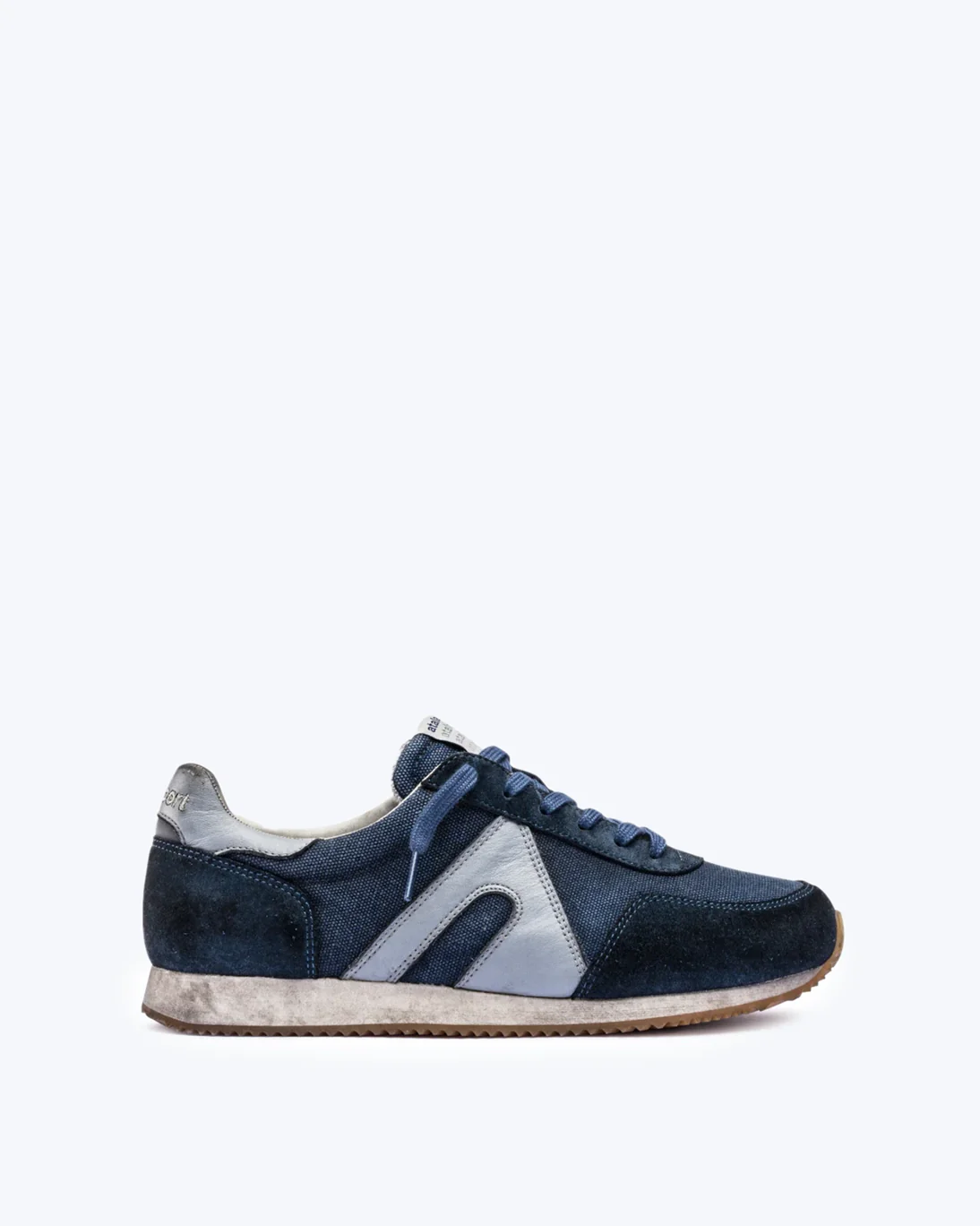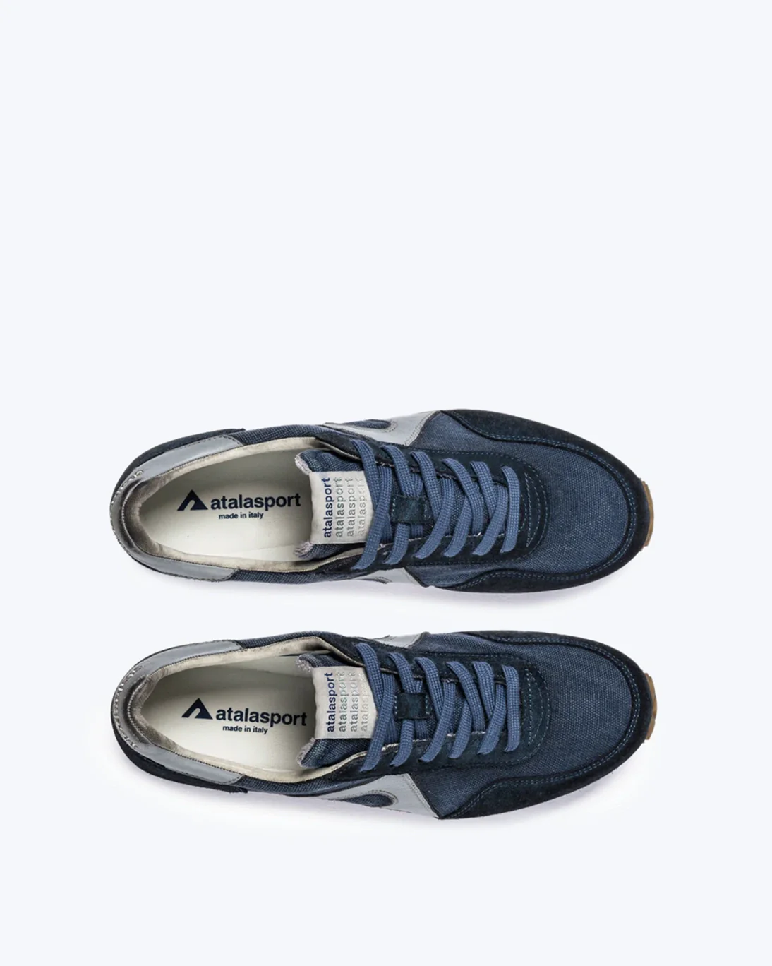 Zapatillas de la marca Atalasport con tratamiento Stone-Washed. La parte superior combina ante suave, lona de algodón y piel de napa, con forro de cuero y lengüeta de felpa de algodón para mayor comodidad.