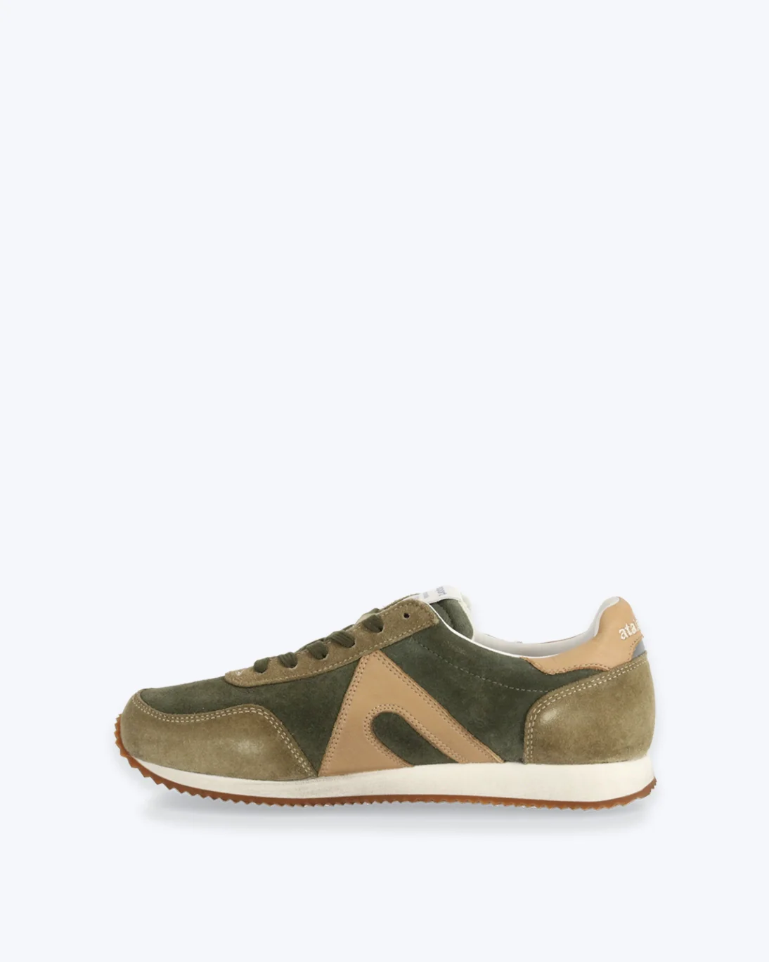 Zapatillas de la marca Atalasport con tratamiento Stone-Washed. La parte superior combina ante suave, lona de algodón y piel de napa, con forro de cuero y lengüeta de felpa de algodón para mayor comodidad.