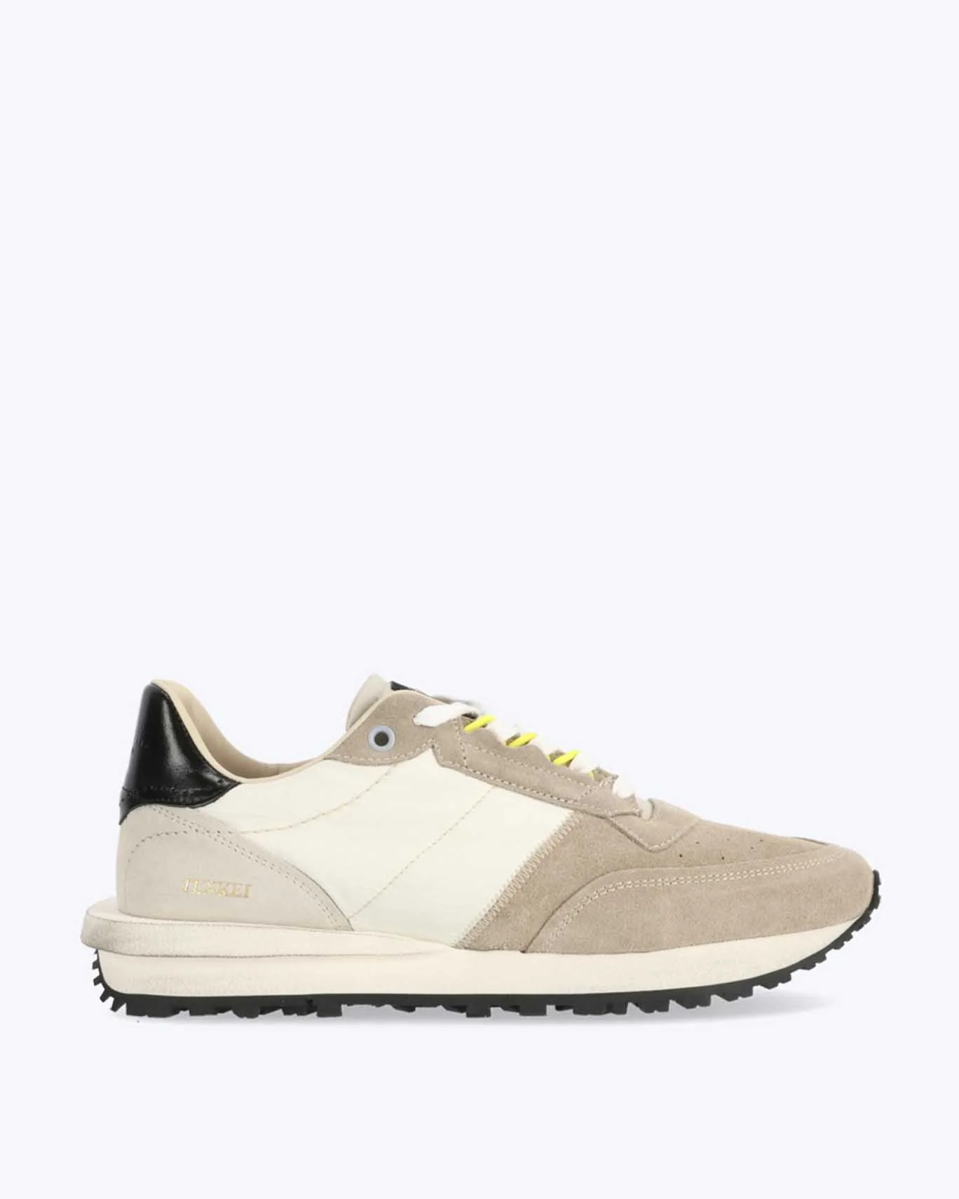 Zapatillas de la marca Hidnander de color beige y blanco.