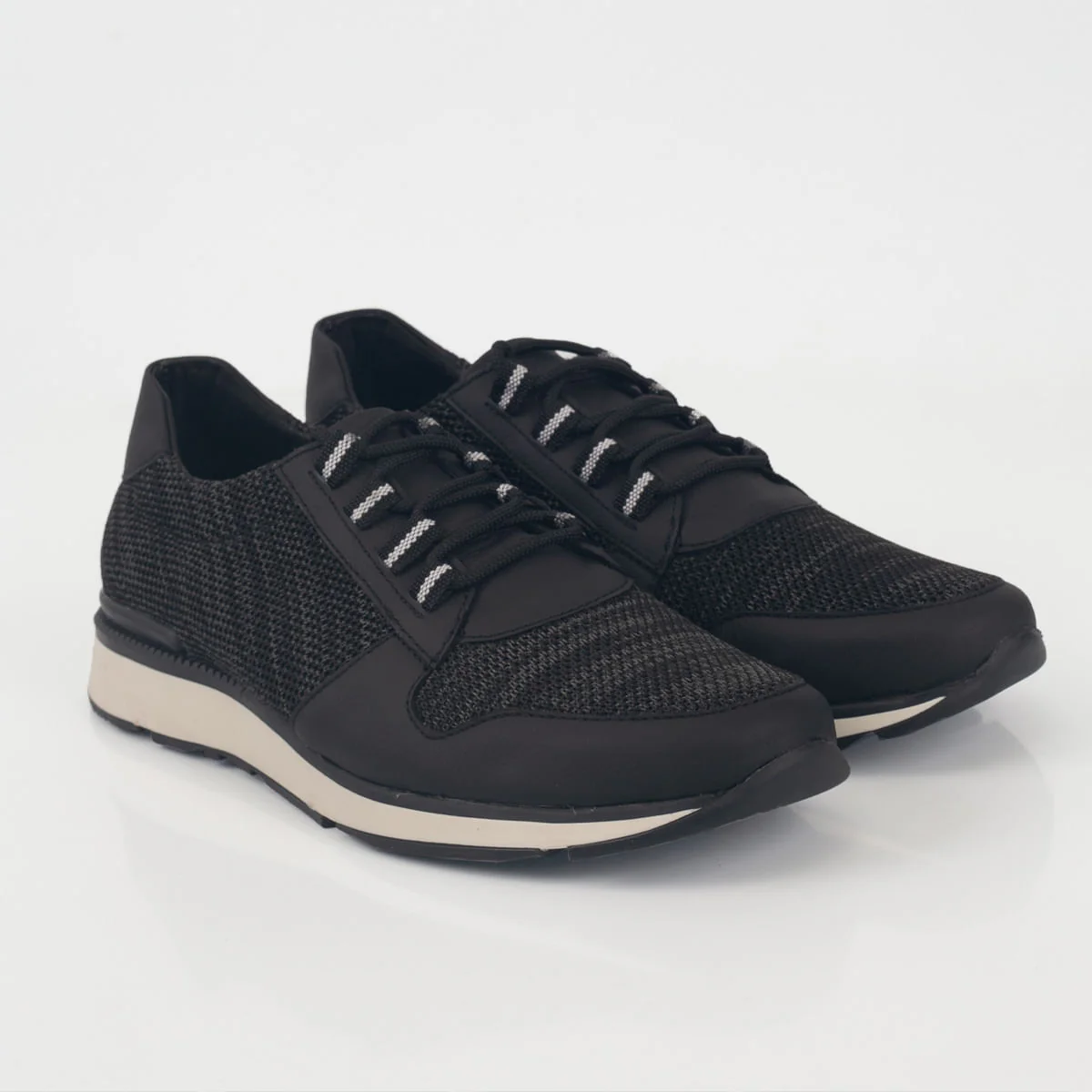 Descubre el zapato sport VOMANO en color negro intenso, confeccionado con una mezcla técnica de 95% poliéster y 5% spandex que ofrece flexibilidad y resistencia. Su diseño Oxford tejido presenta una estructura ligera y transpirable que se adapta al movimiento natural del pie, garantizando comodidad durante todo el día.