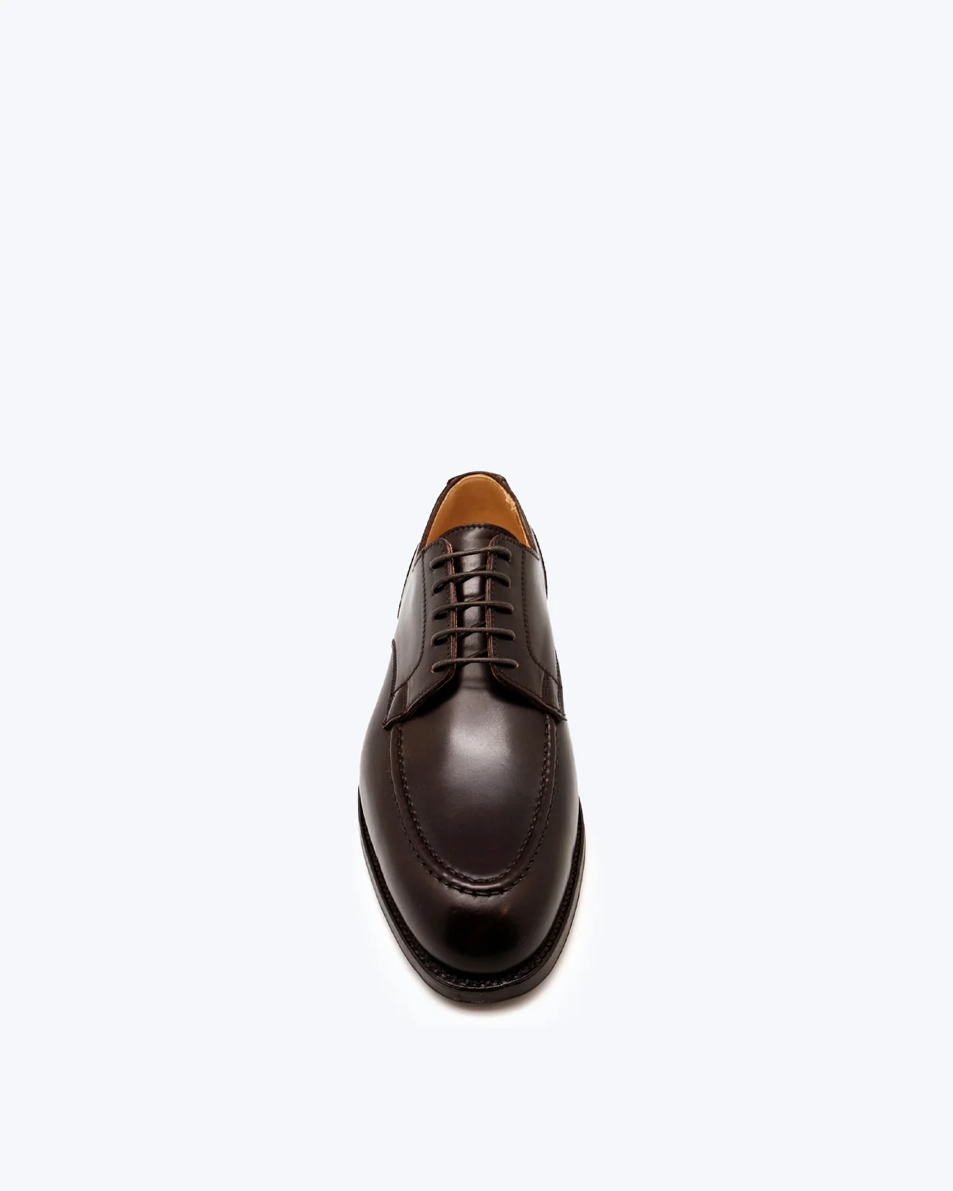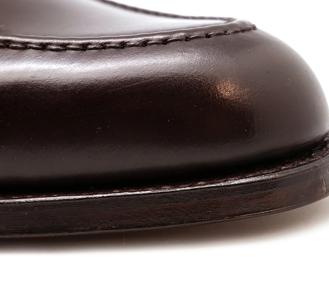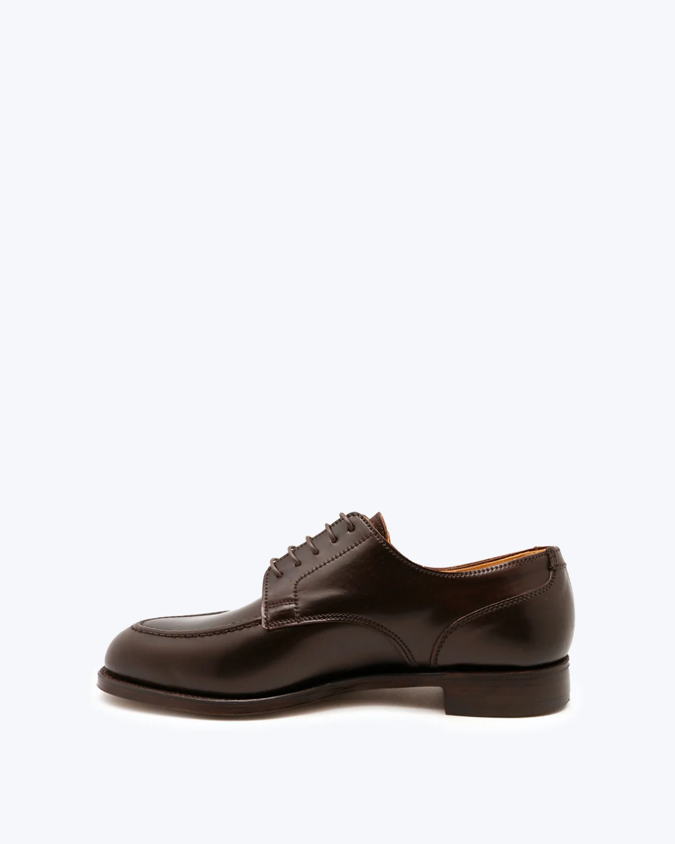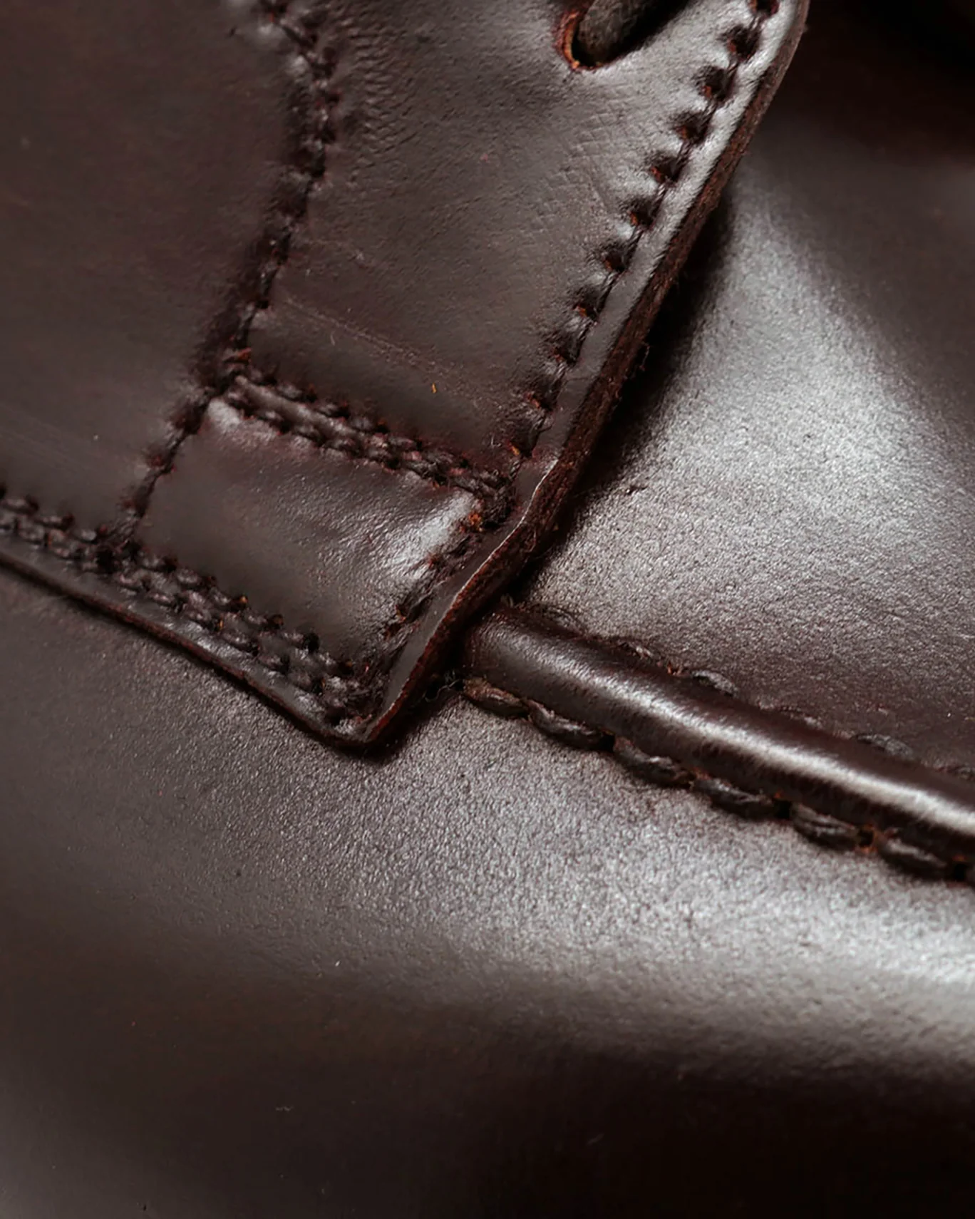 Piel de anca de potro (shell cordovan). Color burdeos. Suela de cuero.