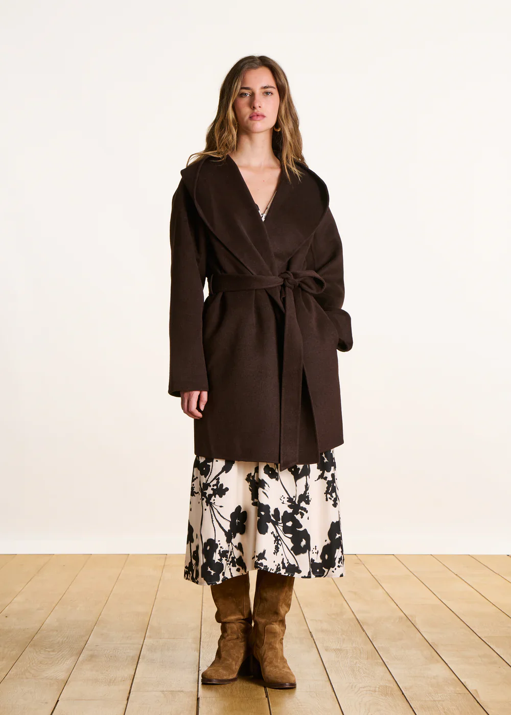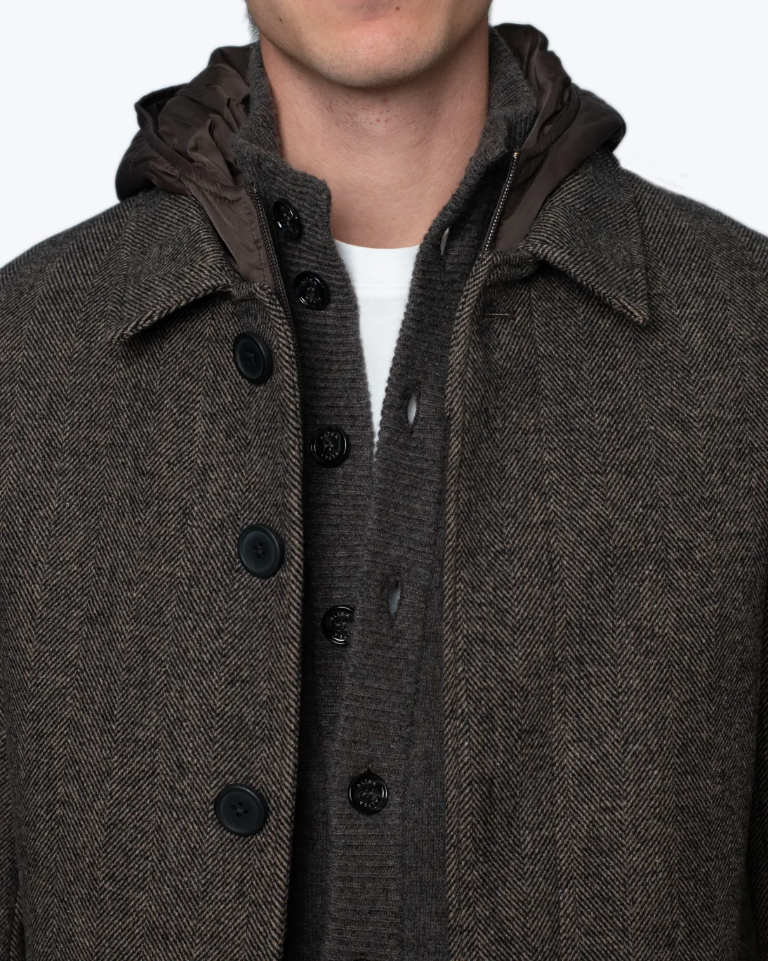 ABRIGO DE ESPIGA MARRÓN CON CAPUCHA AT.P.CO
