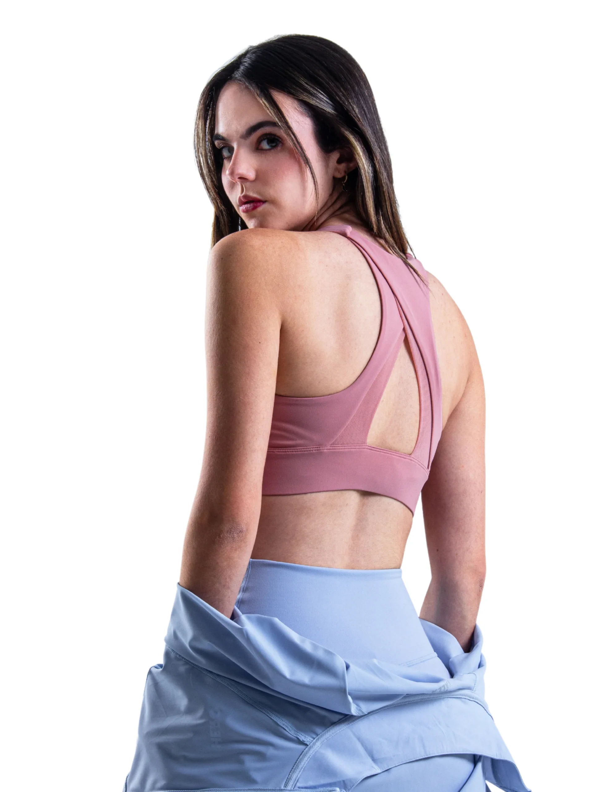 BRASIER DEPORTIVO CRUZADO LISO DESCOTADO EN U HERO ROSADO