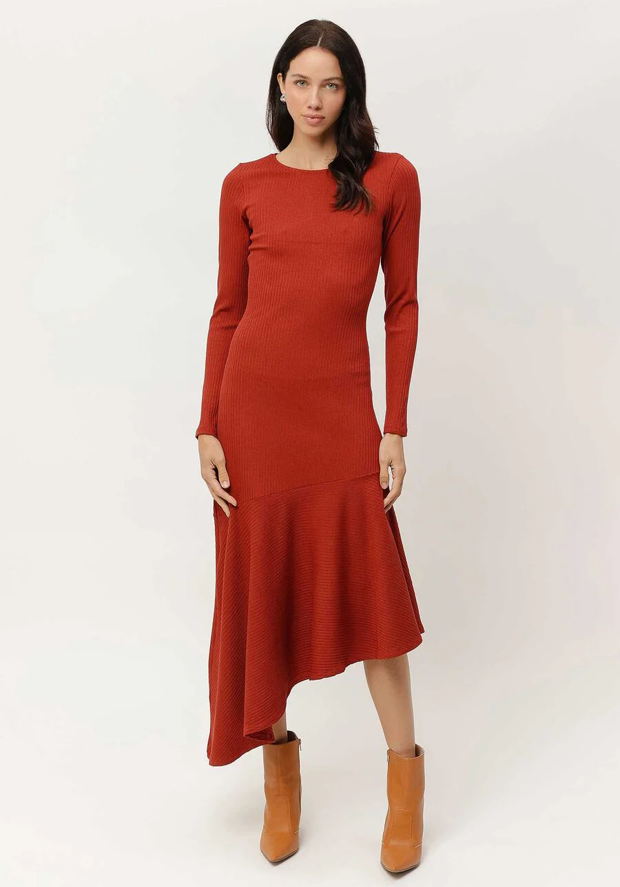 VESTIDO MIDI MANGA LARGA ROJO