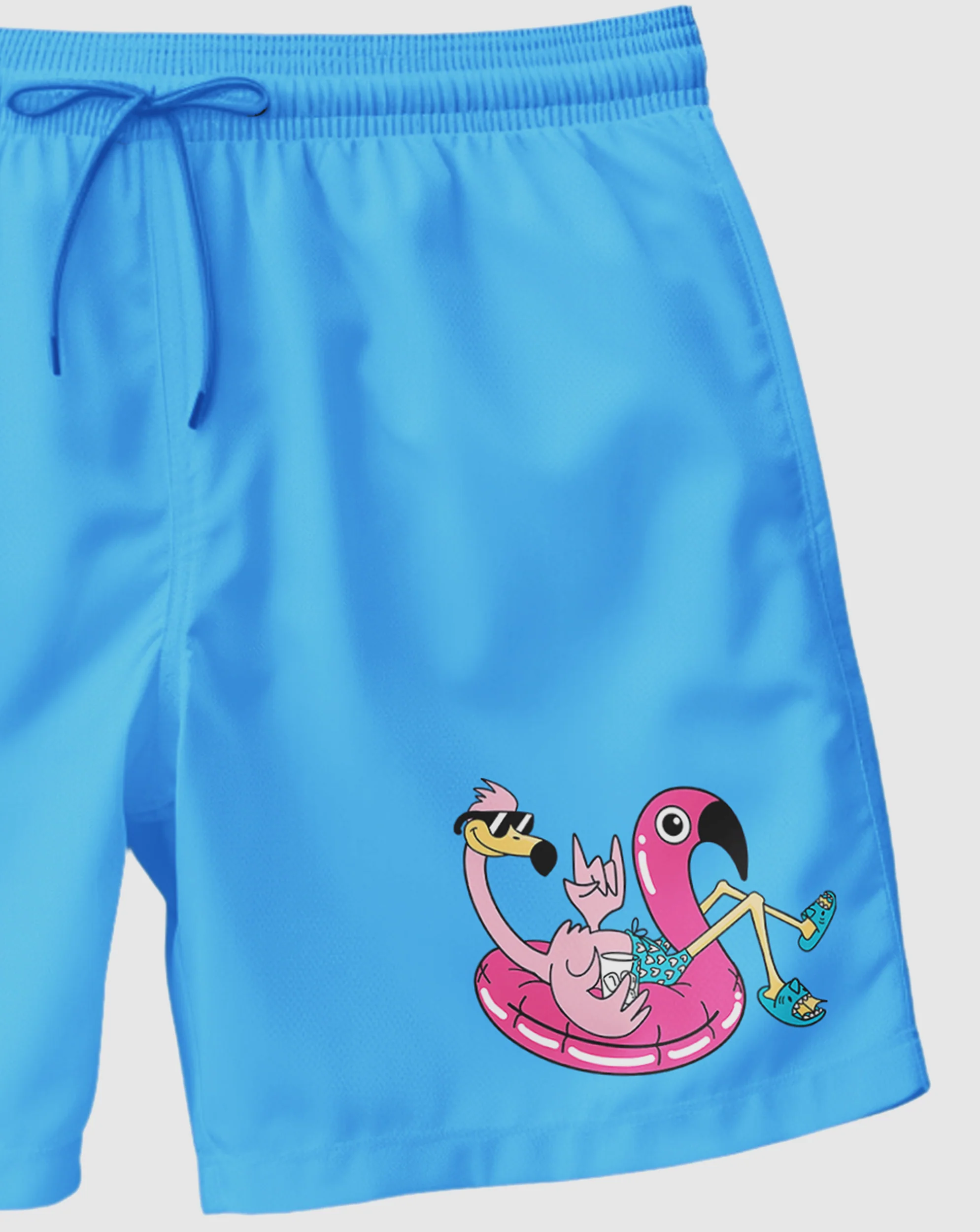 Bañador tipo boxer para hombre en color azul claro y logo flamenco en flotador