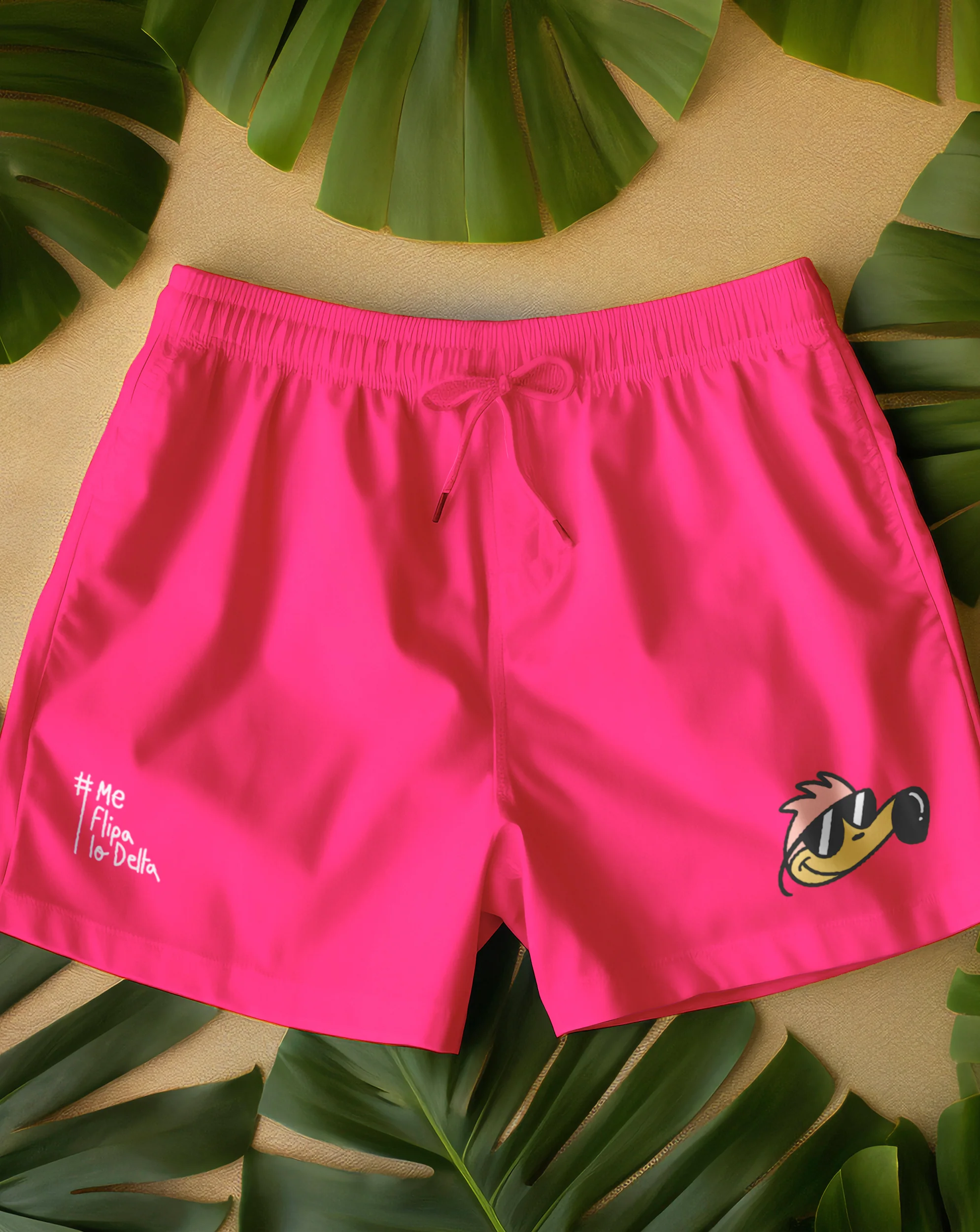 Bañador tipo boxer para hombre en rosa fluor y estampado de flipi